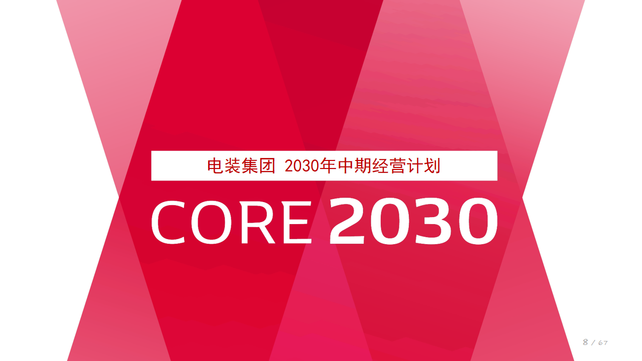 在截至 2030 年的 5 年间,我们计划投入 3.7 万亿日元用于研发、2.2 万亿日元用于设备投资、7000 亿日元用于 IT、知识产权、人才等价值创造基础设施建设,力争到 2030 年实现销售额 8 万亿日元以上、营业利润率 10% 以上、净资产收益率(ROE)11% 以上的目标。同时,在保障业务发展投入的同时兼顾股东回报,计划在截至 2030 年的 5 年间实现累计投入与股东回报合计 8 万亿日元以上。