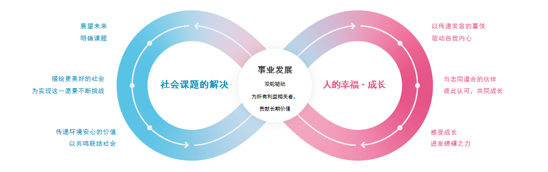 电装将 “解决社会课题” 与 “实现人类幸福与成长” 作为中长期经营目标,推进「CORE 2030」计划实施。在 “解决社会课题” 方面,我们将着眼未来,以 “环境” 与 “安全” 为核心,创造多元化价值,为社会发展贡献力量。在 “实现人类幸福与成长” 方面,我们将以通过社会贡献培育的内在动力为基础,助力每位员工实现个人成长,并将其转化为卓越成果。通过实现这两大目标的良性循环,我们将推动业务持续增长,在满足所有利益相关方期待的同时,实现企业价值提升与可持续社会贡献的双重目标。
