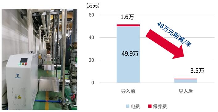 经过上述改造,电费和保养费每年可削减48万元,并减少663吨CO2的排放,2年即可收回投资。