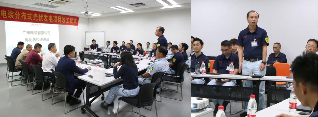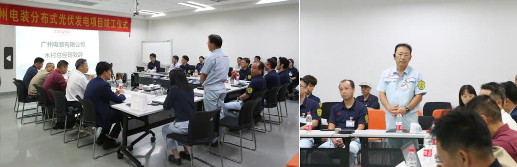 竣工仪式上,广州电装木村雅人总经理表示:“漫长9个月的工期最终能实现“施工灾害0”与“工场交期影响0”的目标,离不开投资方、施工方与项目组紧密合作的努力。本次项目在电装中国据点里属于第二大光伏项目,在电装集团内也备受瞩目。接下来将开启25年光伏发电项目的深度合作,希望能大家能继续克服重重难关,为中国碳中和事业做出贡献。”