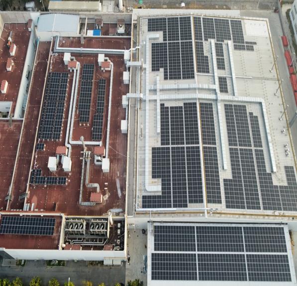 DMTT光伏项目覆盖南工厂及北工厂,安装区域包括工厂屋顶、出货区、停车场等,安装总容量为4.52MWP,安装面积3.4万㎡。于2023年12月27日全部并网发电,预计发电量463万KWH/年, 消减CO2排放量2820吨/年。