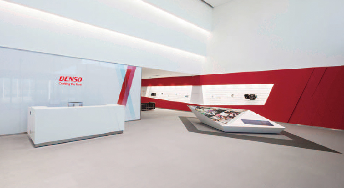 The design of spaces where customers interact with DENSO, such as facility entrances, as well as indoor and outdoor signs that are easily seen by the general public, is very important because it forms their first impression of DENSO. To effectively communicate DENSO's corporate visual image, please follow this guideline with an accurate understanding of its contents.