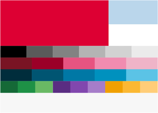 The corporate colors are limited to specific colors. Unique colors are used to highlight the company's stance and distinctiveness. They are used repeatedly in all forms of media and play a pivotal role in promoting the company's brand image and presence. DENSO's corporate colors include primary colors, secondary colors, and supplementary colors, and priority is designated even among the primary colors.