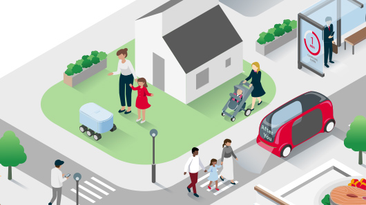 The 2D illustration style can be used to express complex technologies, social issues, and solutions in a concise manner.The isometric illustration style, which is an overhead view from an angle, is useful for expressing the whole concept.