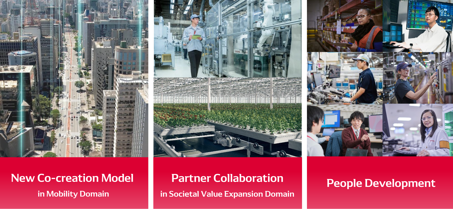 In mobility, we advance fundamental technologies and create ecosystems linking vehicles, cities, and communities. We also extend mobility technologies into new domains, delivering value to society beyond the automotive sector.