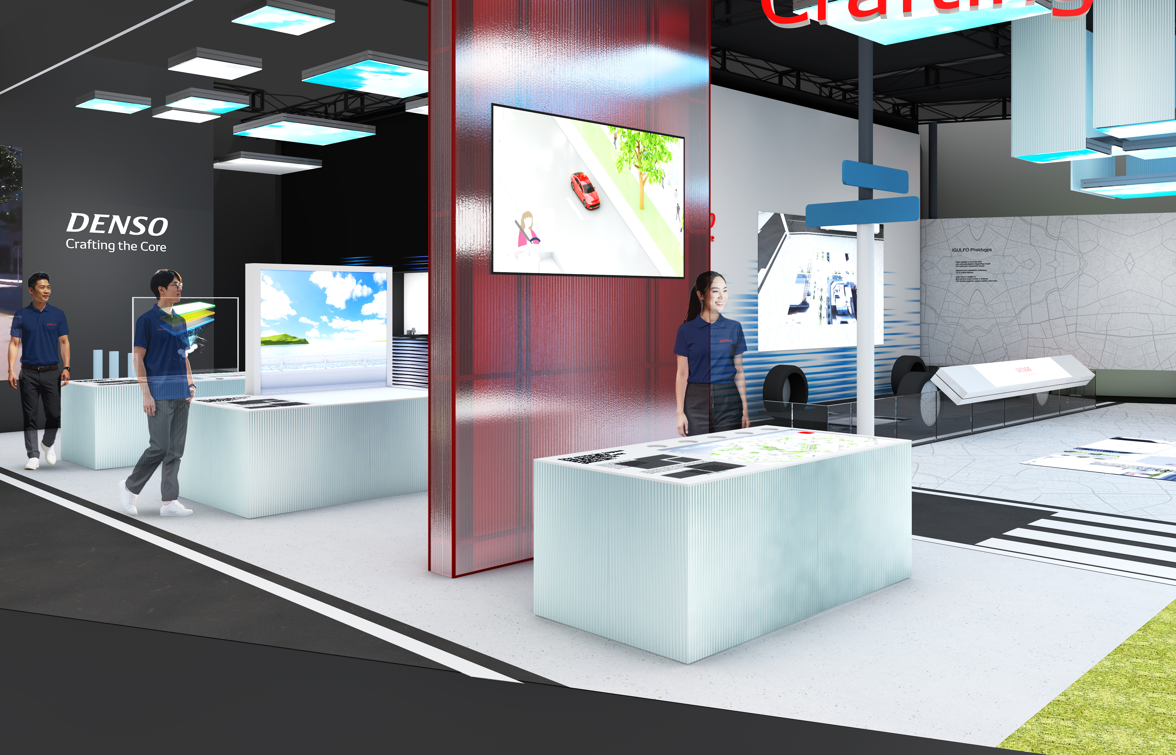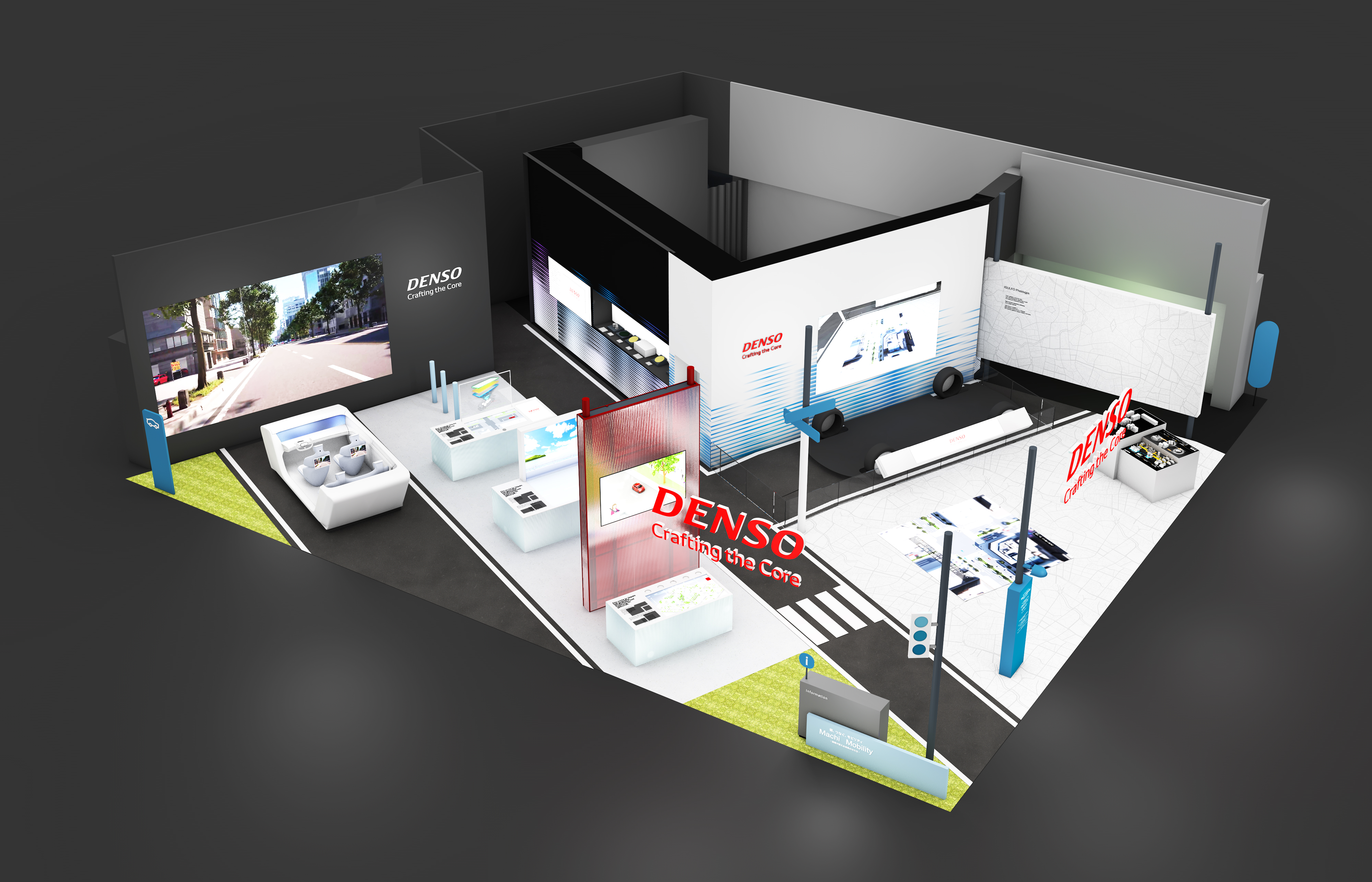 By advancing technology, DENSO aims to create a world where we can all live more safely and in a more environmentally friendly manner. This year's exhibition booth was designed with urban areas in mind.