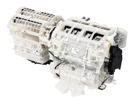With these new technologies, the new smaller, lighter climate control unit with higher performance can also be used in eco-friendly cars. For instance, for stop/start system the evaporator in the unit can be replaced with a cold storage evaporator, and for hybrid and electric vehicles the heater core can be replaced with a heat pump air conditioning system. Also by changing the blower fan to two layer structure, to take in external air and circulate internal air simultaneously, the air conditioning system could be used for vehicles with limited heat sources.