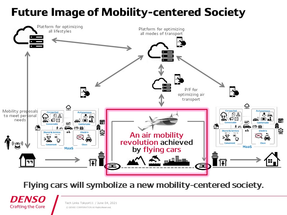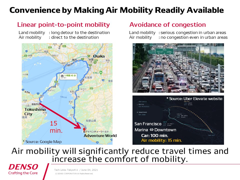Now, I’d like to move on to the next topic: What are flying cars as defined by DENSO? I’ll briefly explain the convenience brought about by making air mobility readily available.