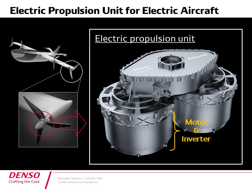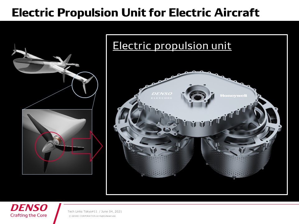 This image was taken from a different angle. The ELEXCORE brand logo is indicated under the DENSO logo. We use ELEXCORE technology for the electric propulsion unit for electric aircraft.