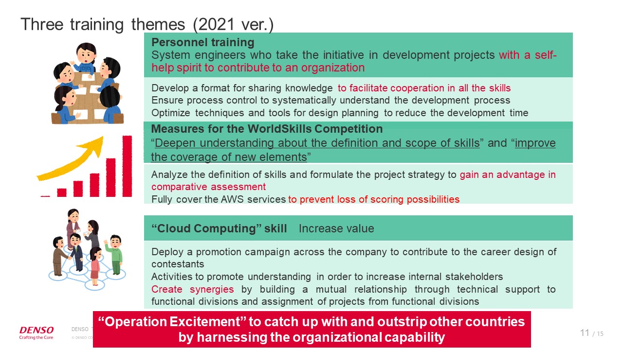 We have arranged things so that contestants can work on activities by themselves. To cope with the rapid technological advancement in this field, we are currently conducting a project named “Operation Excitement” to quantify the progress in training and create synergies in-house.
