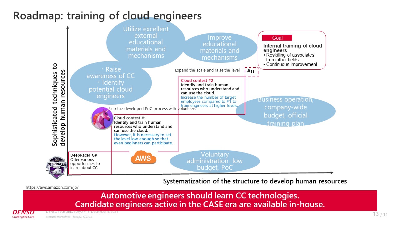 I also wanted to give DENSO associates the chance to experience a cloud event where they can enjoy learning. The first cloud contest was made possible upon receiving AWS Certification from AWS, just as cloud computing was starting to attract attention in-house.