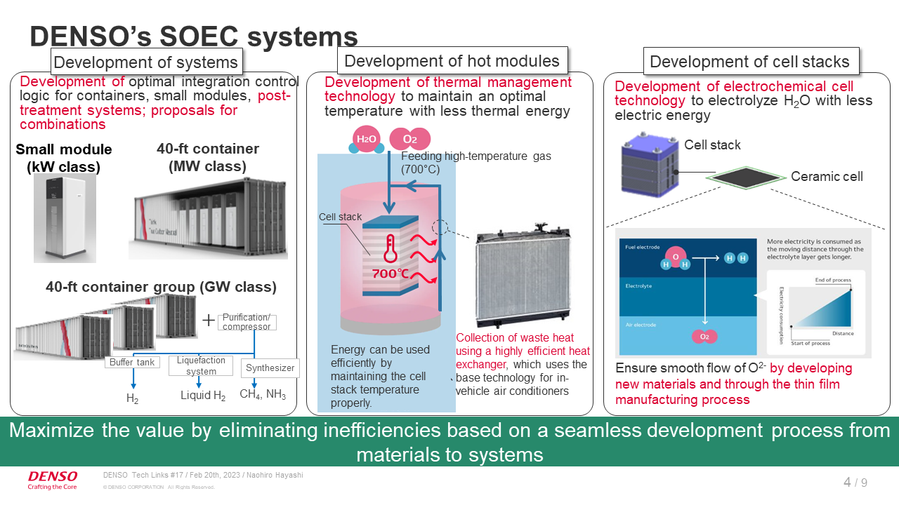 Thoroughly Eliminating Inefficiencies through Seamless Development from Materials to Systems — DENSO’s initiative to develop SOEC systems, which are indispensable for creating a hydrogen society