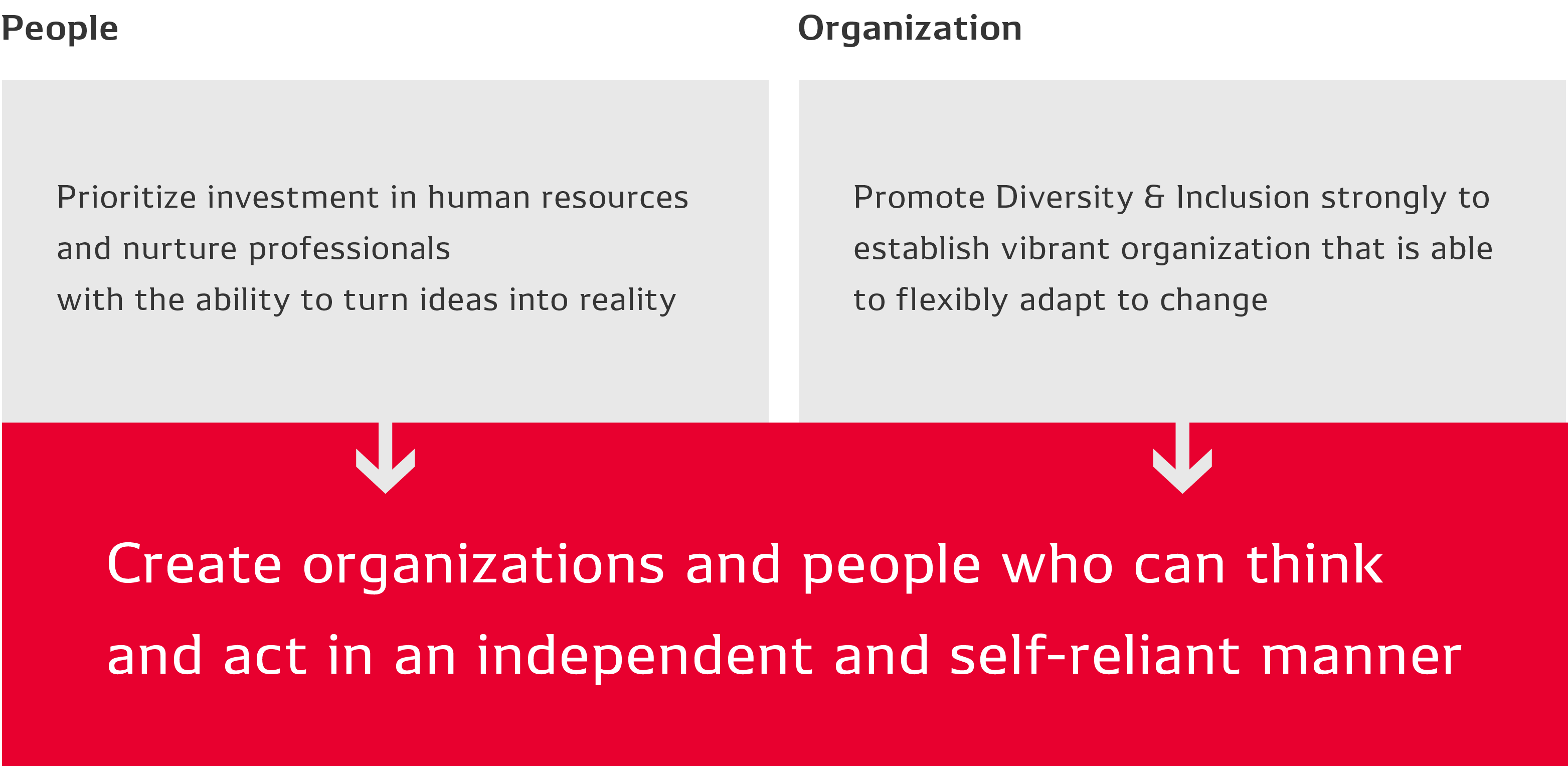 We aim to achieve our goals by focusing on the following five pillars together with our 170,000 colleagues around the world.