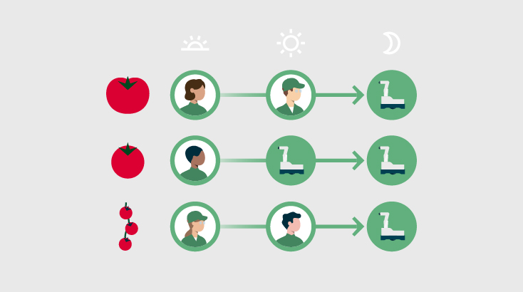 By replacing part of the harvesting work to robot machinery in accordance with the fluctuation of harvest volume, reduce the burden on employees during peak harvest, leading to efficient and sustainable operation for workers as well.