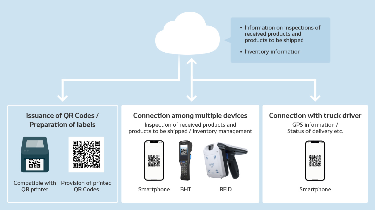 • By centrally managing various types of information and history linked to QR Codes, enable information sharing and utilization with various players throughout the food supply chain.