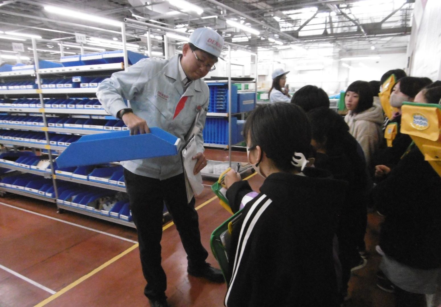 工場で使っている部品を間近で見て興味津々