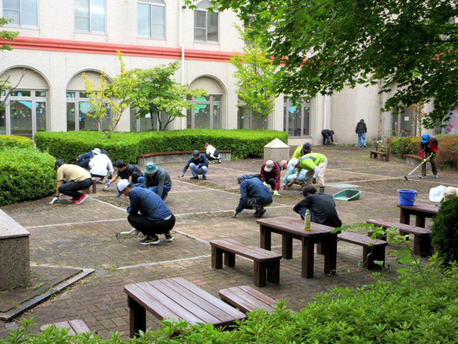 この活動は、病院敷地内に茂る雑草を、当社の有志社員とその家族が協力して除去する取り組みで、
