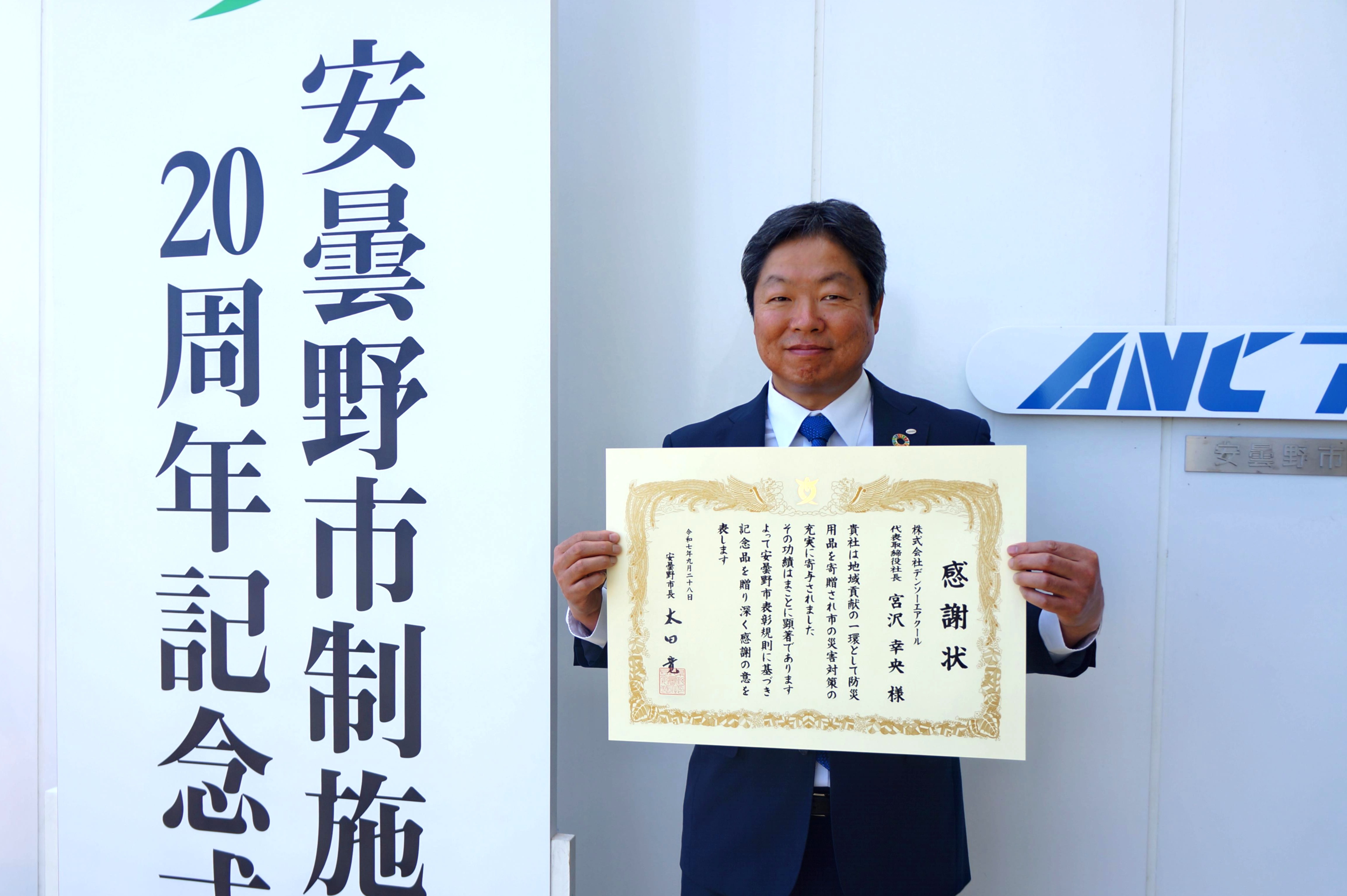 9月28日(日)に開催された「安曇野市制施行20周年記念式典」にて、 2009年より継続してきた防災備蓄品の寄贈活動に対し、安曇野市より感謝状をいただきました。 永年にわたる当活動が評価されたことは、安曇野市に拠点を置く企業として大変光栄であり、 今後も地域に必要とされる企業であり続けるべく、地域貢献活動に取り組んでまいります。