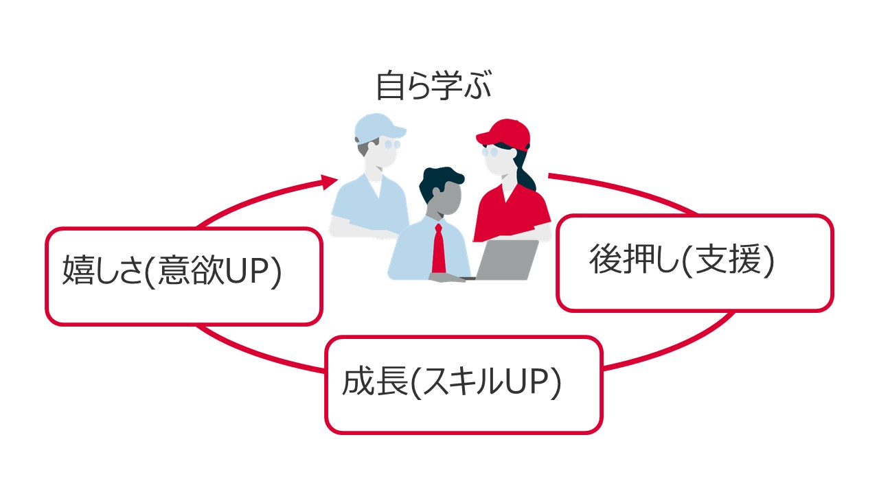 その他にもe-Learningなど、さまざまな学びの場を用意しており、新しい挑戦の積み重ねに向け後押しします。