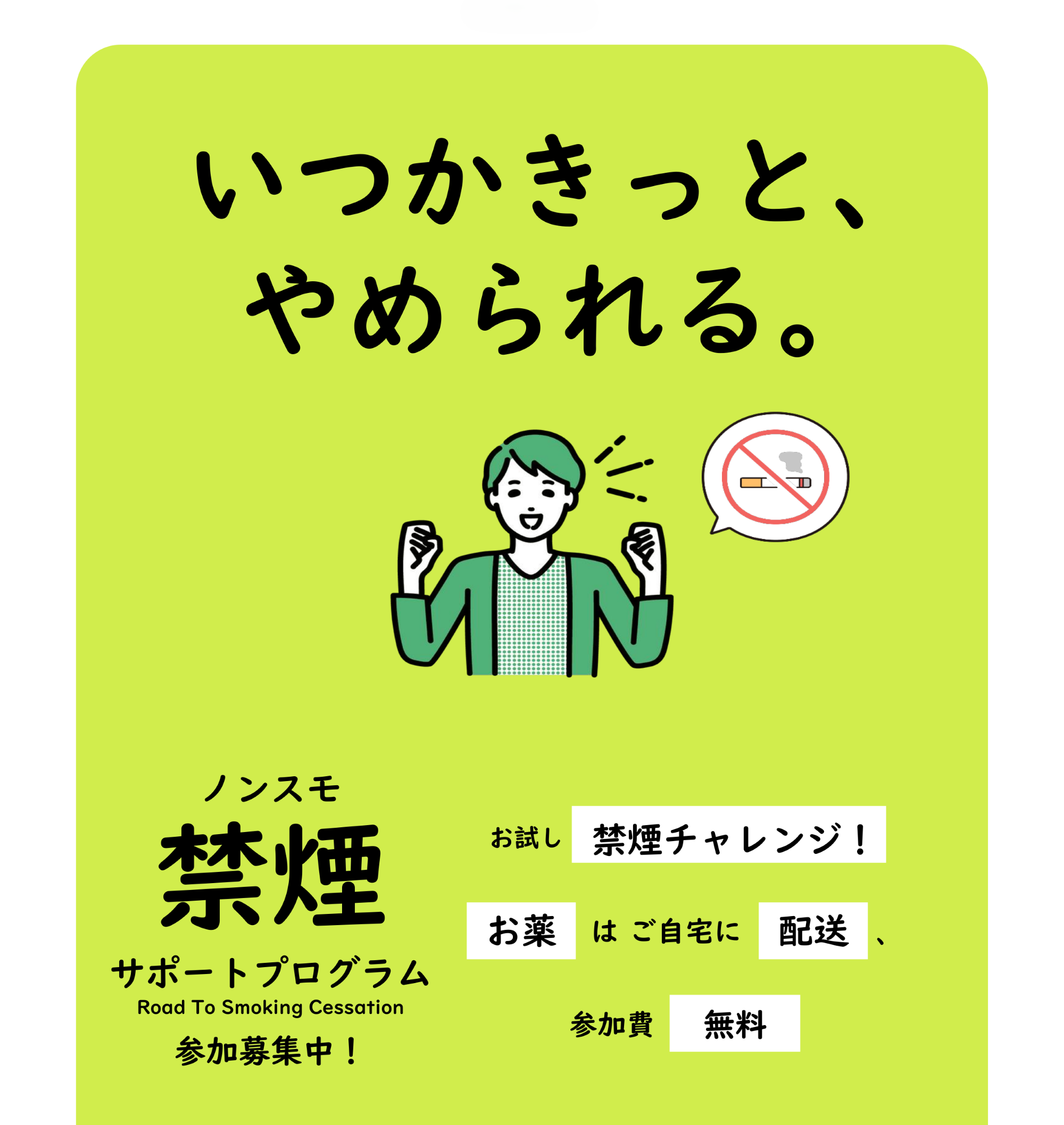 | 非喫煙率 | 健康診断問診票 | 80% | 64.1% | 65.0% | 66.0% |
