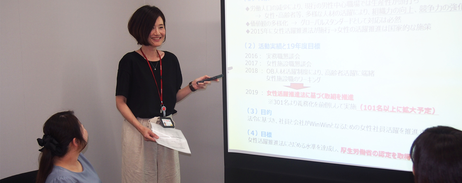 またワーキンググループ活動、上司と部下の懇談会、職種の再編成等の様々な取り組みにとり、フラットで垣根のない組織づくりを推進し、女性が活躍しやすい環境を整えています。