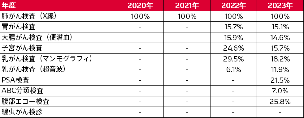 【5大がん検診受診率、線虫がん検診受診率】