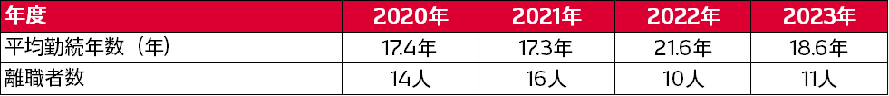 【平均勤続年数、離職者数】