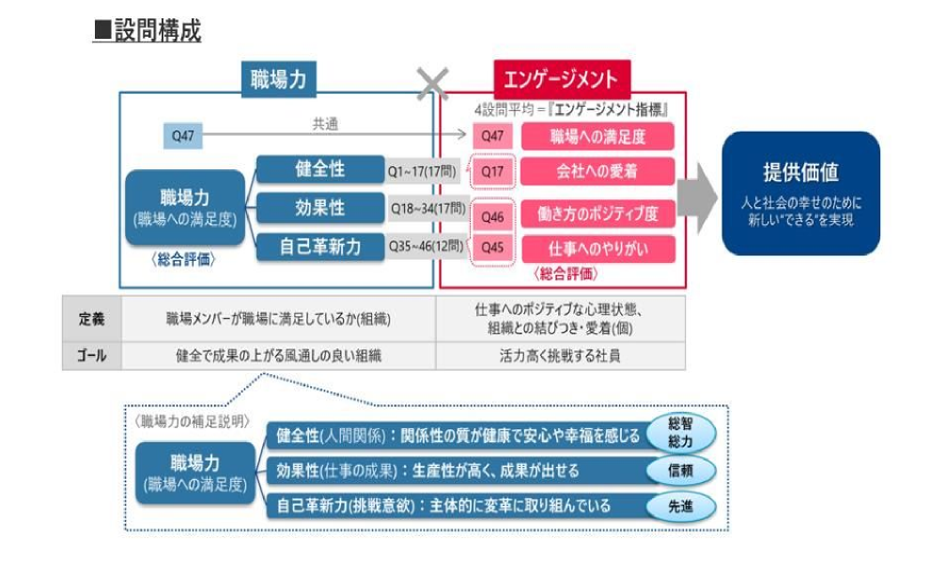 職場の状況をメンバー全員が当事者として把握し、健全で成果の上がる風通しの良い職場づくりに向けた改善を促進することを目的に職場力調査を実施しております。