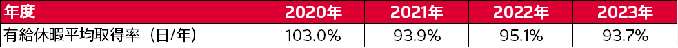 有給休暇取得日数20日またはカットゼロを目標とし、さらなるワークライフバランスの推進をめざして取り組んでます。
