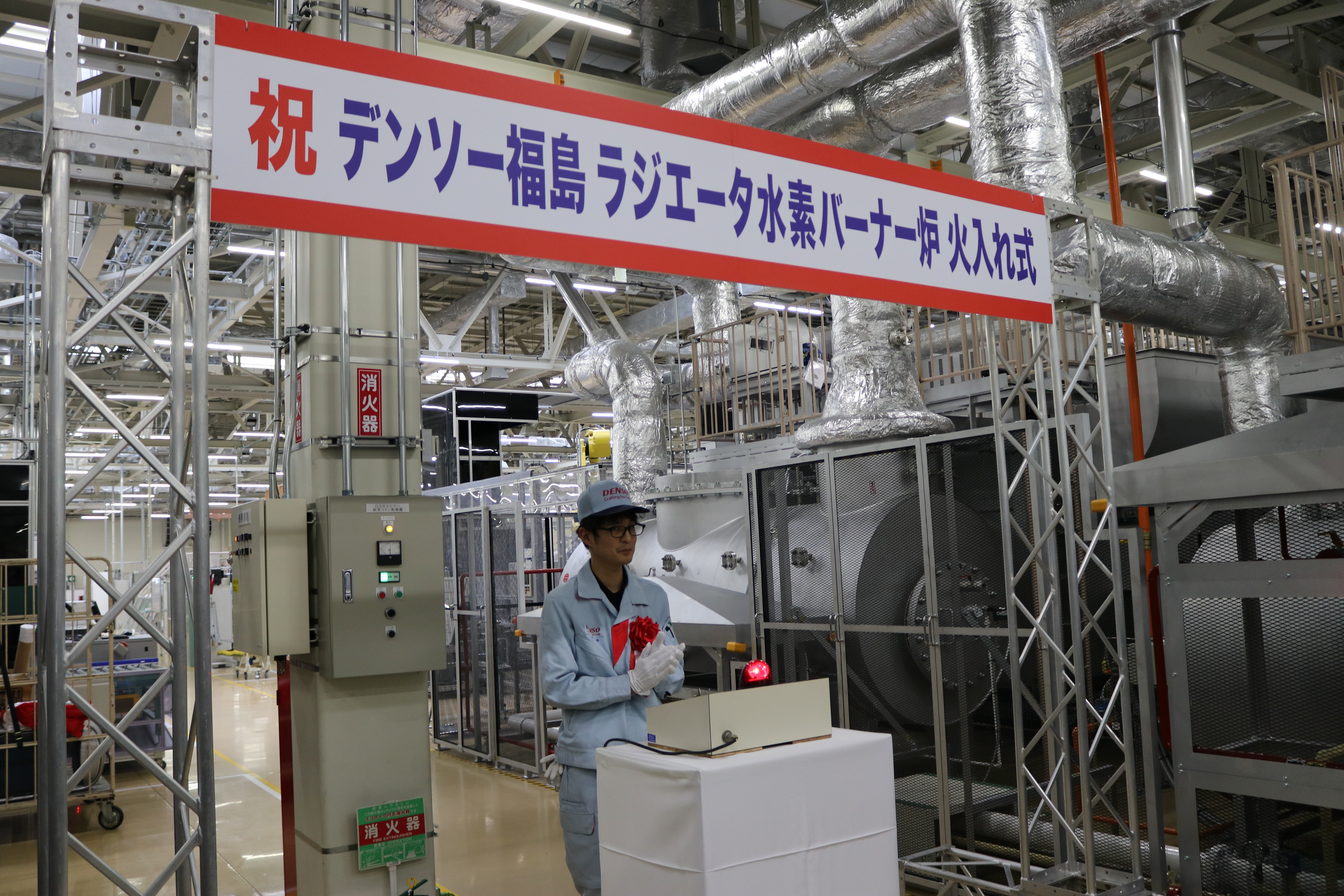 水素を使用した燃焼炉の安全を祈願し、本格運転が開始されました。