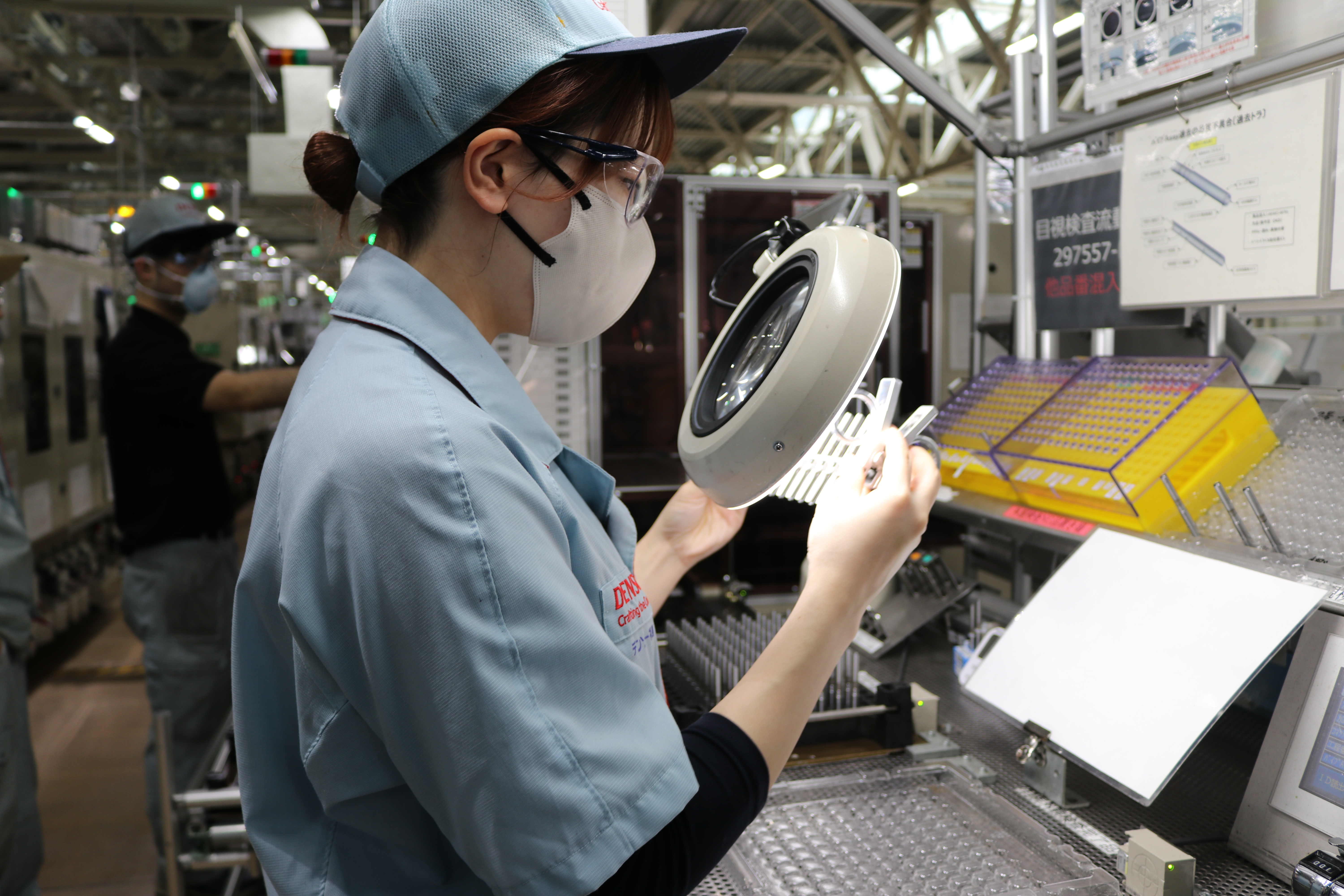インジェクターを生産する設備のオペレーターと外観検査を行っています。