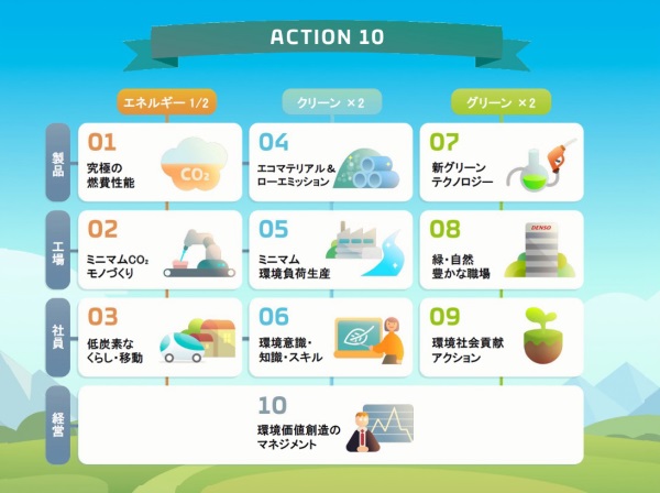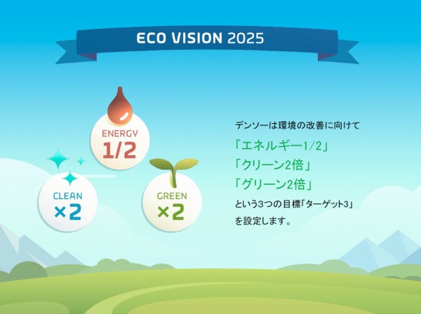 デンソー宮崎は、デンソーグループの一員として、「地球環境の維持と両立」に向けて「先進的なクルマ社会の創造」に貢献できる企業を目指しておりデンソーエコビジョン2025の目標達成に向けて、社員一人一人がターゲット3、アクション10を意識しながら、環境行動に落とし込んでいます。環境保全活動を通じて経済価値については、第三者機関によるISO14001認証を継続することにより、「環境経営」のレベルアップに取り組んでいます。