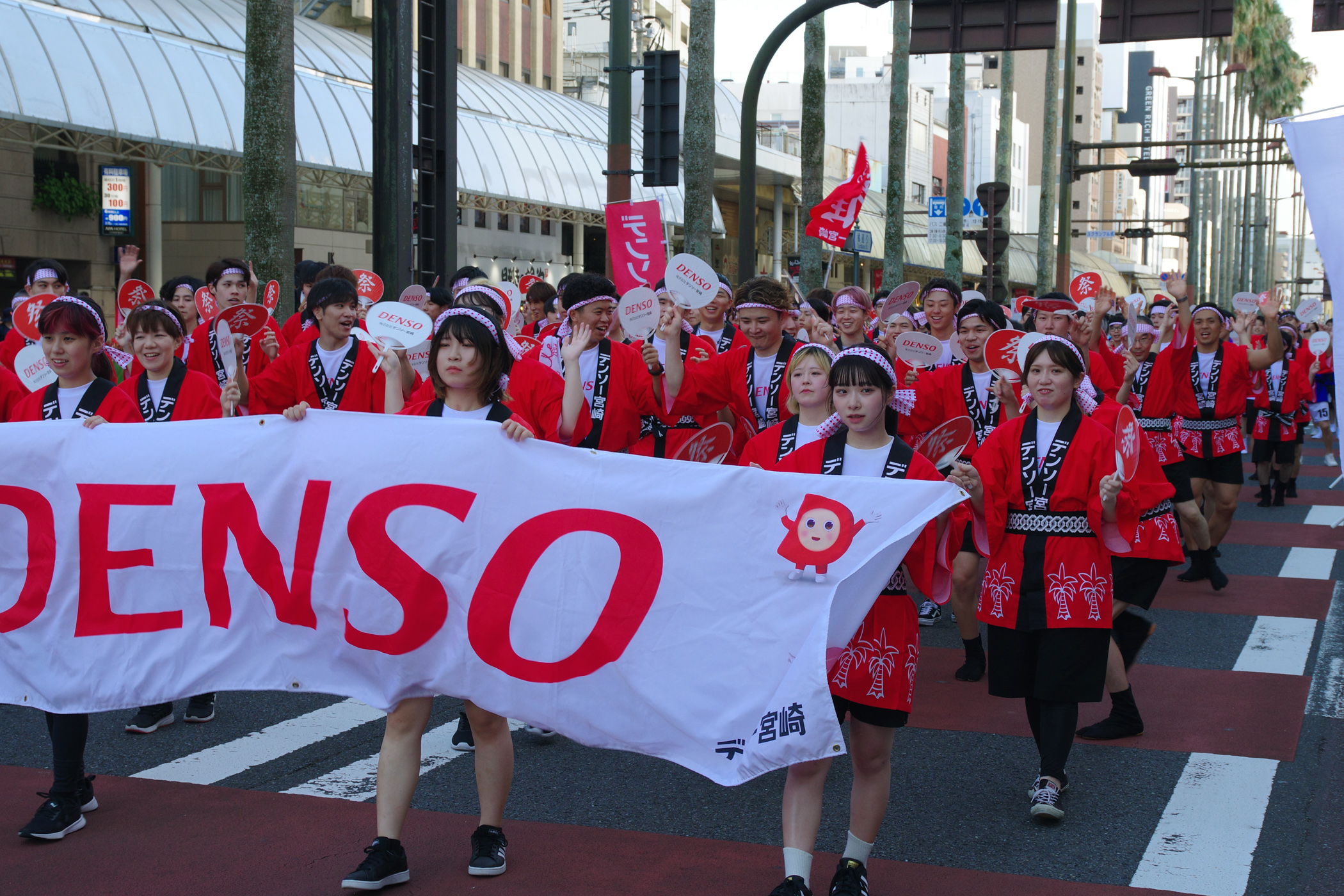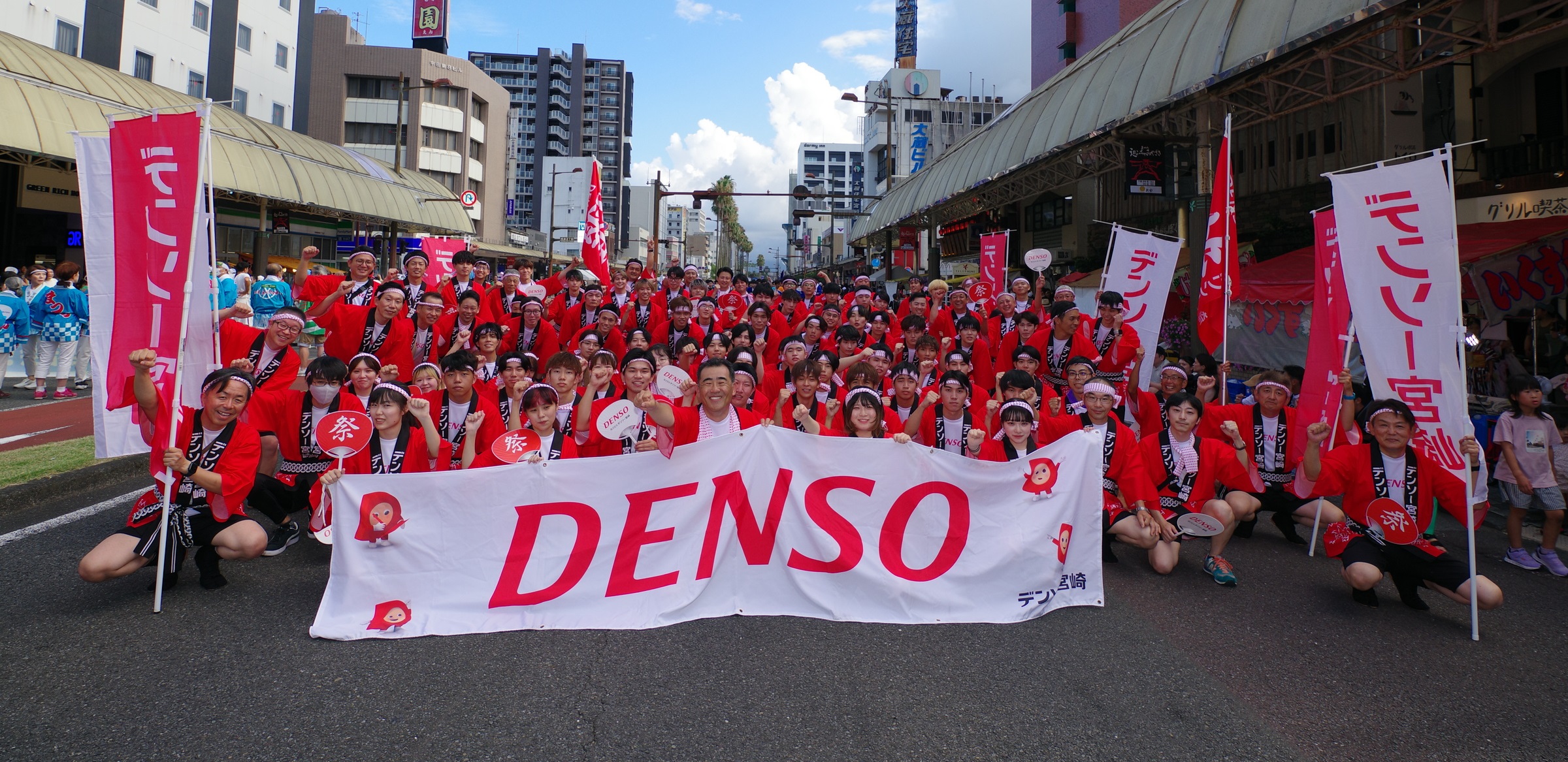 宮崎市で開催される夏祭り「まつり えれこっちゃみやざき」に参加しています。市民総踊りと呼ばれるイベントには100名を超える社員が参加し、祭りを盛り上げるとともに、社員同士のコミュニケーション活性化も図っています。