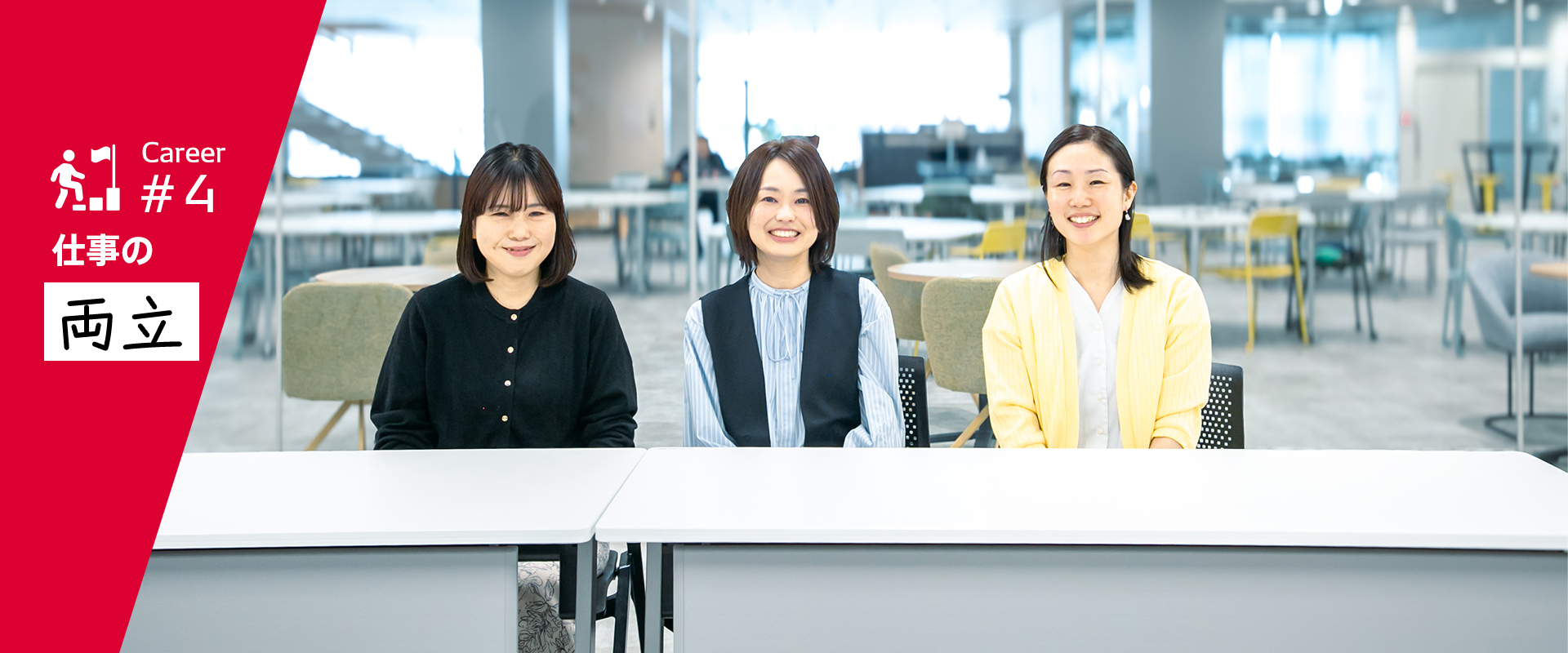 たしかに。私も子育てが一段落した今となっては、仕事だけに全力を注ぐというよりも、「仕事を楽しみながらプライベートも充実させていきたい」と思っているんです。なので、これからは私が上司に作っていただいたような働きやすい環境を、次の世代にもつなげていく役割ですね。これまでの経験を活かして、子育て中の後輩たちをしっかりフォローしていければと思います。