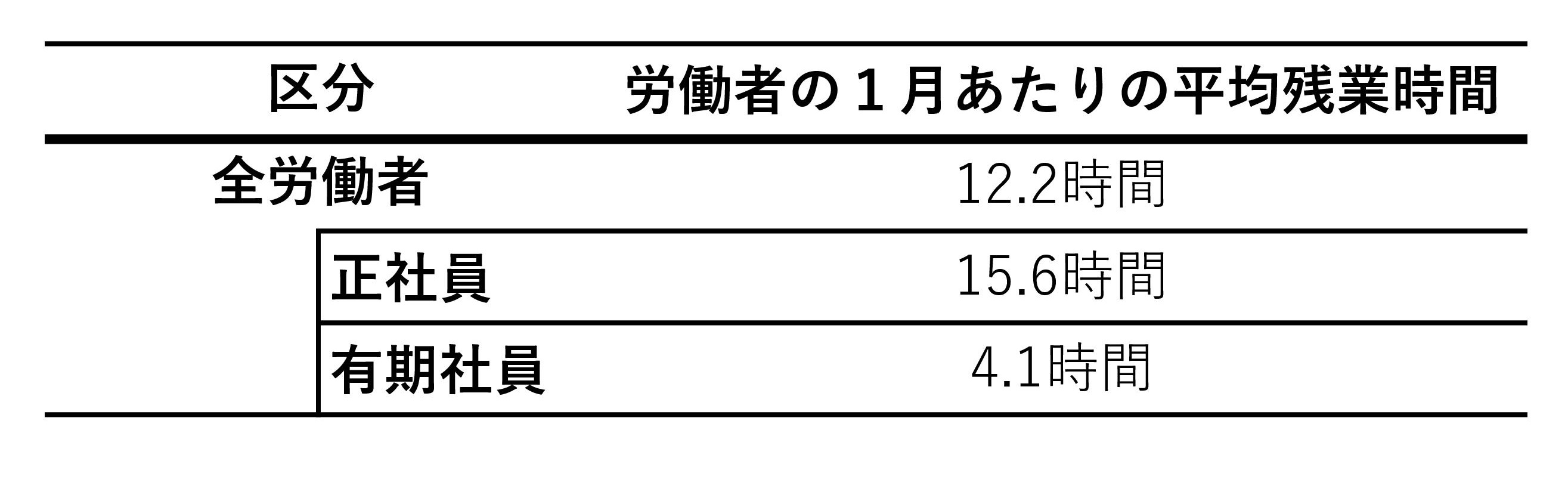 (1)労働者の1月あたりの平均残業時間 (2024年度実績)