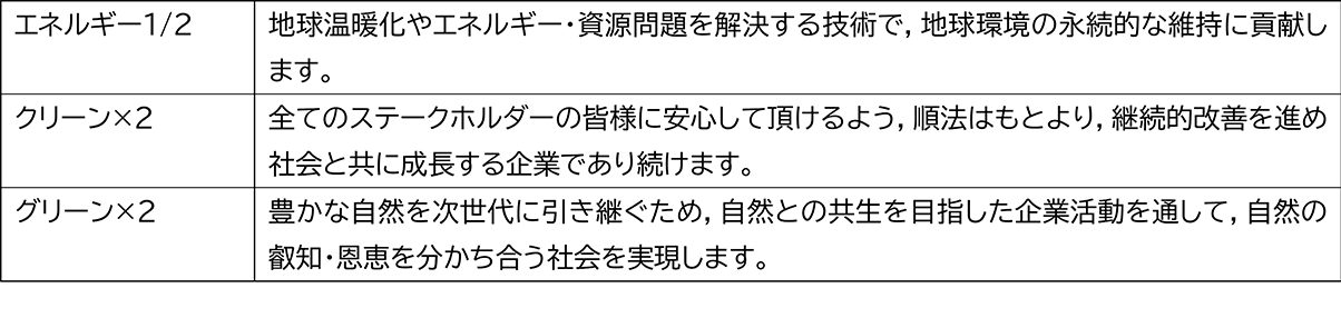 - 私たちは、環境と調和ある成長を目指して、企業行動全般にわたり環境保全活動に率先して努めます。