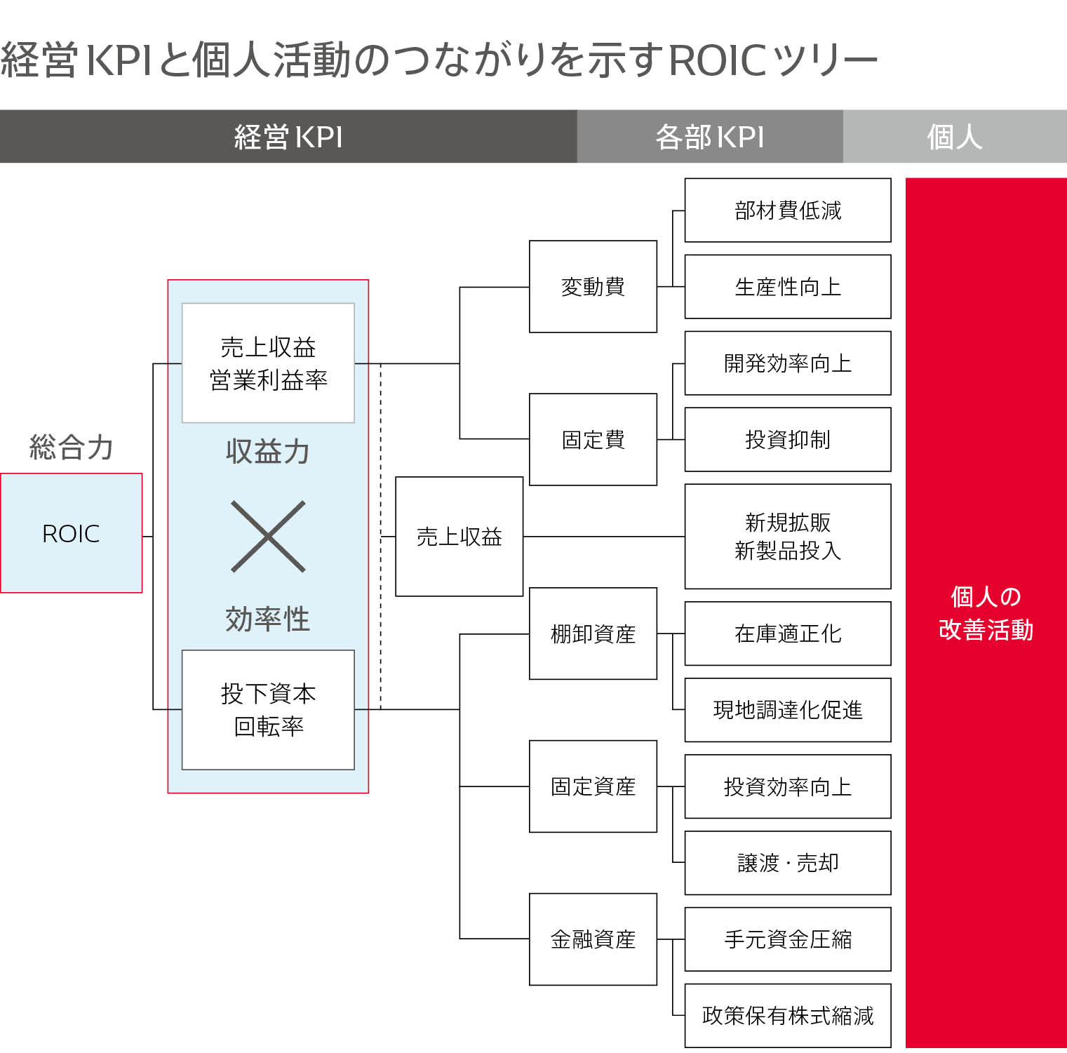 また、2022年度からは、取締役の業績連動報酬の基準にROICを追加し、さらに2023年度からは目標開示も行うことで、経営トップの意識とコミットメントもより強固にしています。