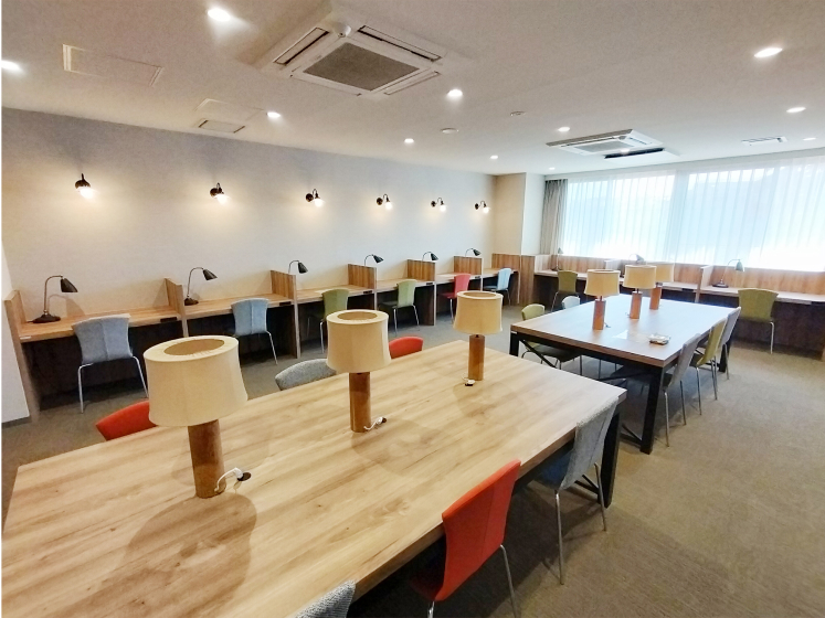 寮内には共用のフィットネスルームやラウンジ、ワーキングスペースがあり、セキュリティ面では24時間のセキュリティシステムとエントランスのオートロックシステム、緊急通報ボタンが設置されており、安全な生活環境が整っています。