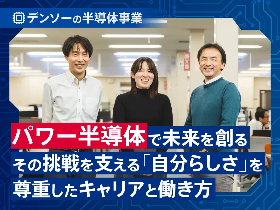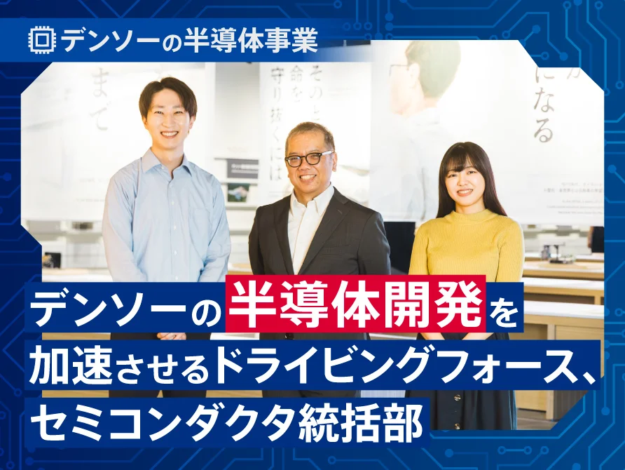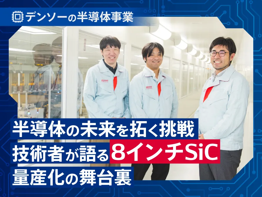 デンソーのモノづくりのノウハウを活かした、その開発プロセスとはいかなるものだったのでしょうか。第3世代SiCパワー半導体のチップ開発をリードしたパワーデバイス技術部の伊藤孝浩、三角忠司、山本建策が開発の裏側を語ります。 -