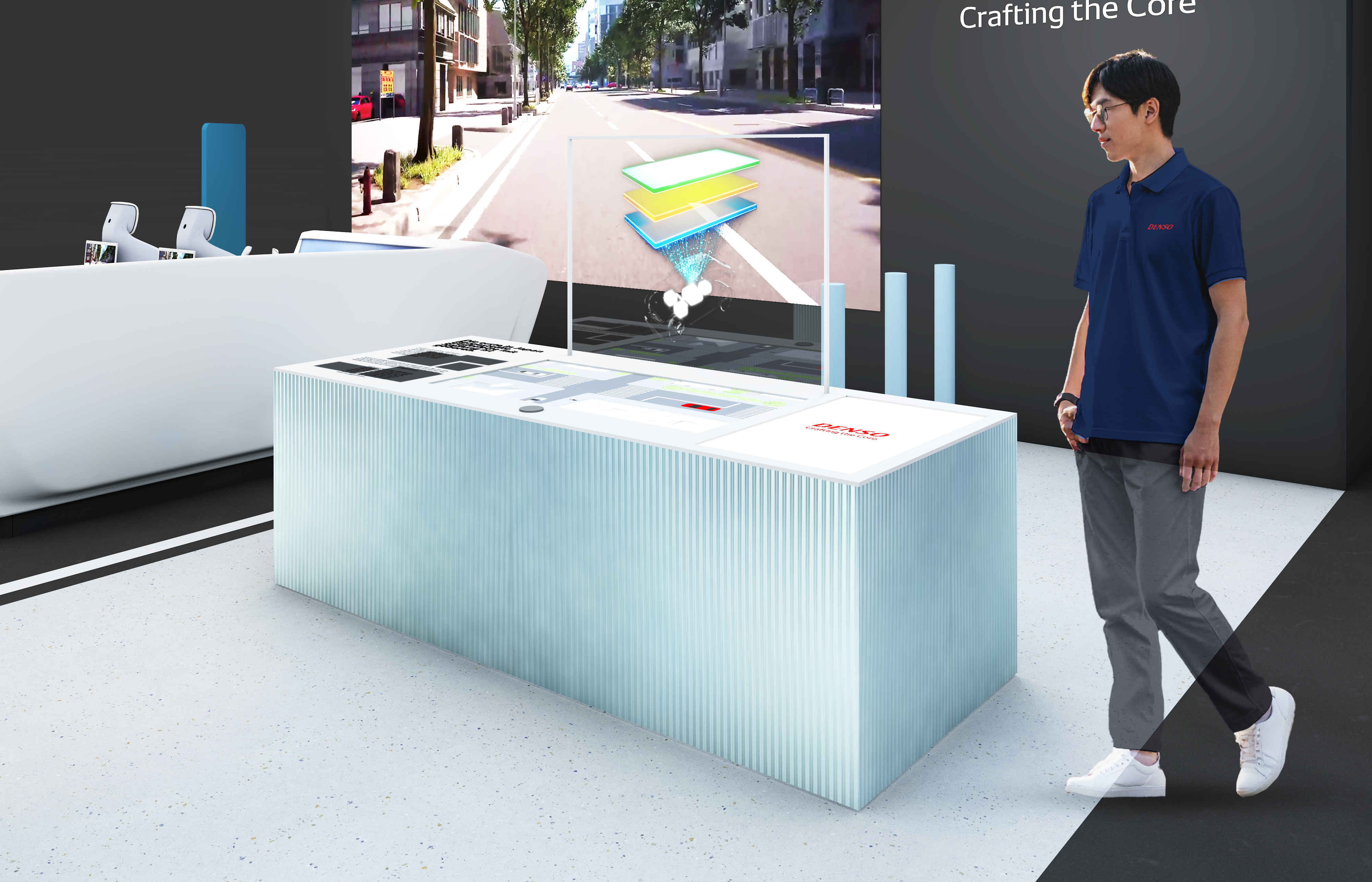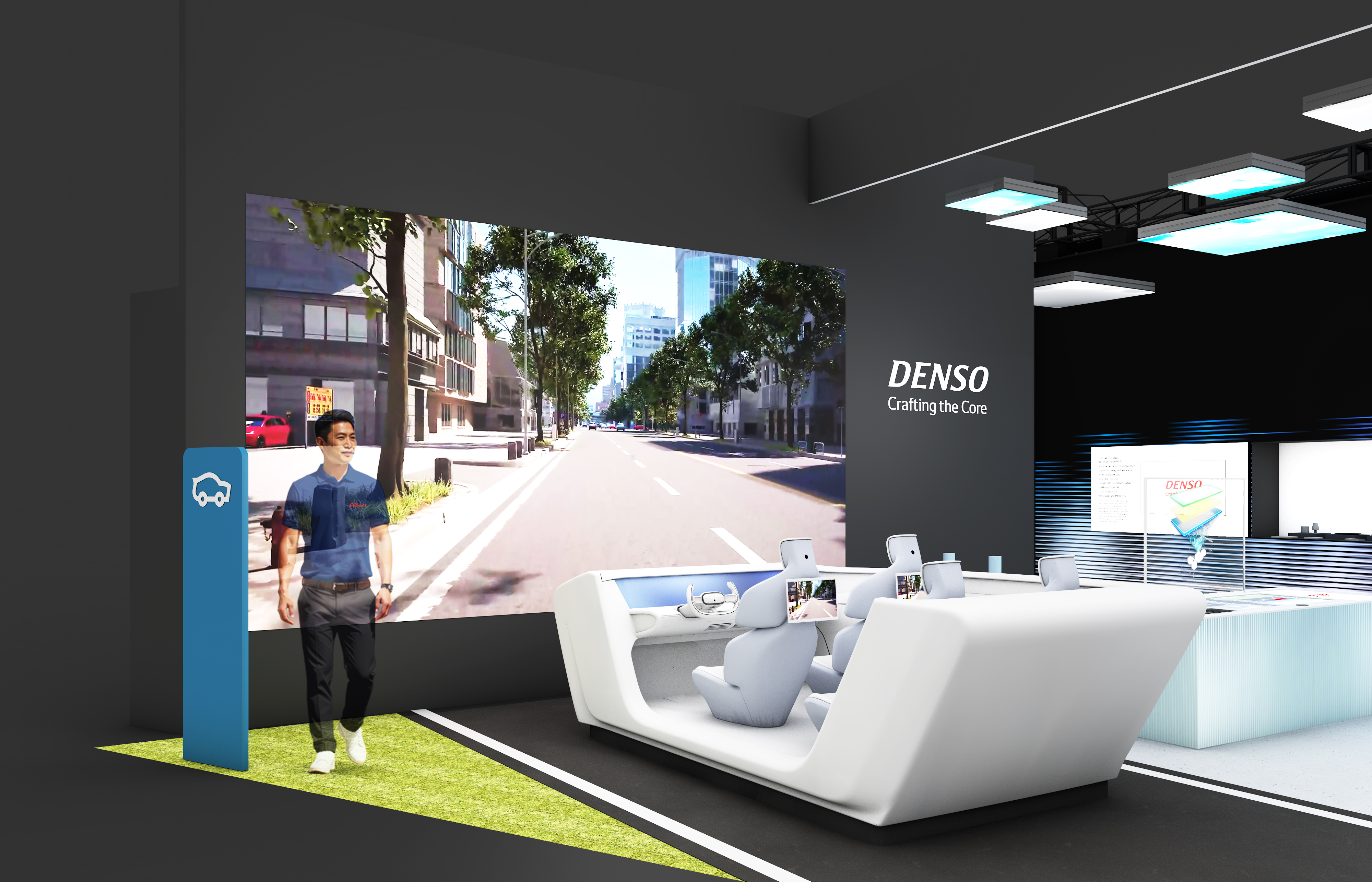 映像と連動した対話型プレゼンテーションで、安全で快適な移動を支えるデンソーの技術を紹介します。