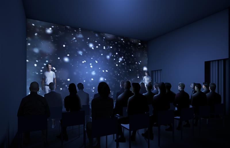 映像・演劇・体感装置を組み合わせた臨場感あふれるシアターで、デンソーの環境技術が描く未来のワンシーンを体感できます。