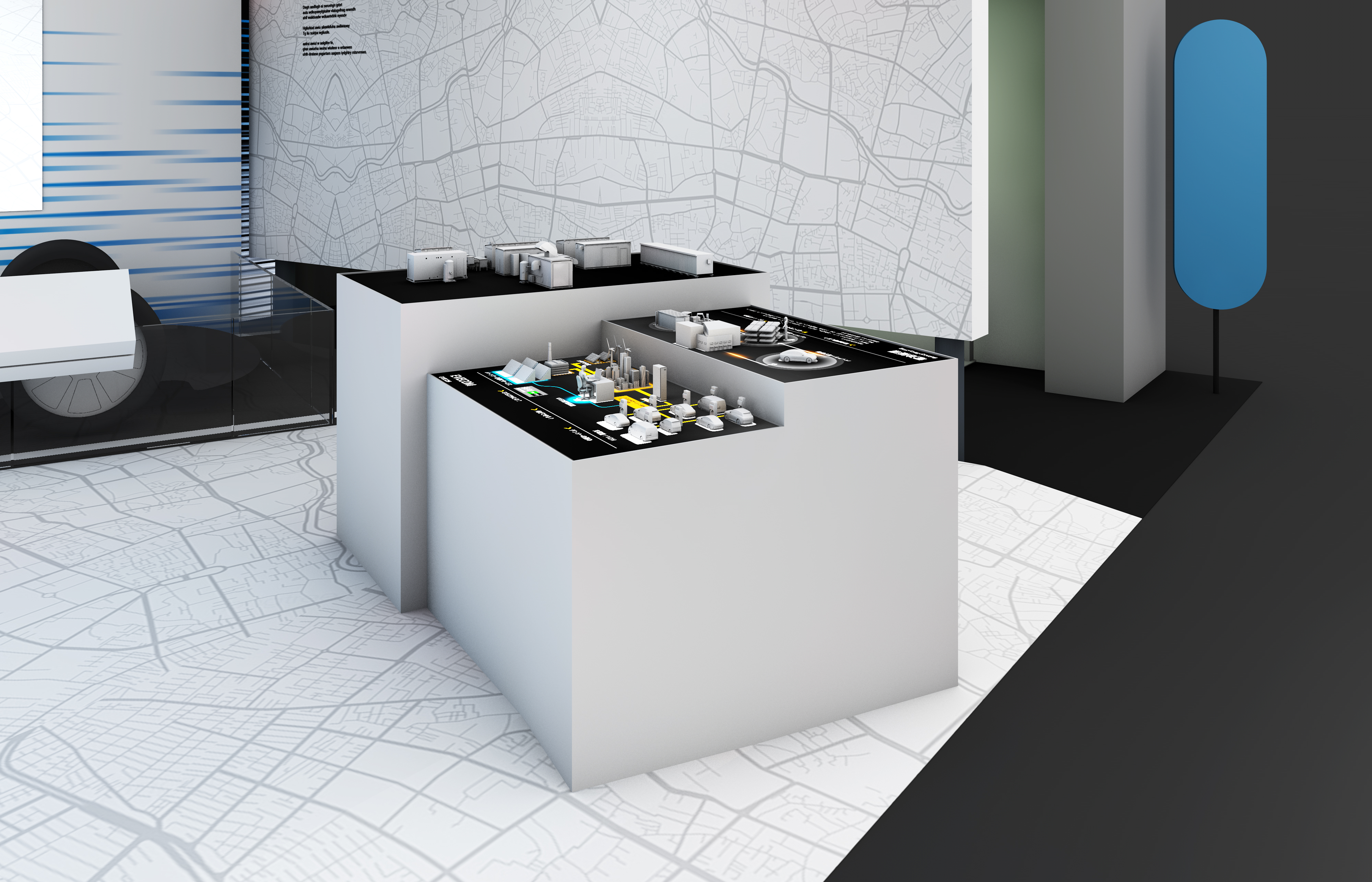 今年の展示ブースは街をイメージしてデザイン。未来の移動体験ができるシミュレーションカー、未来の生活を体感するシアター、演出を盛り込んだプレゼンテーションなど、