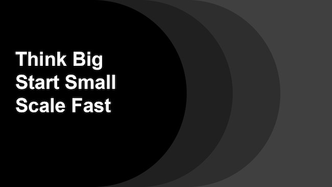 「Think Big」「Start Small」「Scale Fast」。つまり考えていることは非常に大きいんだけど、まずは小さく始めて、それがうまくいったらすごい勢いでスケールさせていきましょう、拡大させていきましょうというもので。これはまさに、インターネットという技術で証明している、1つの成功の法則だと考えることができるわけです。