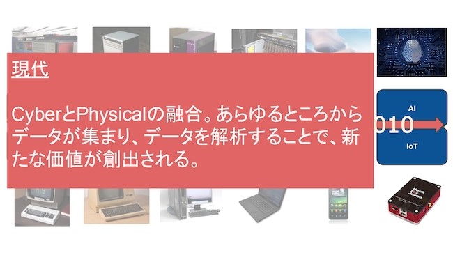 今IT業界だとか、ものづくりの世界がどうなっているかというと、サイバーとフィジカルが融合しています。とくにAI、IoTはそうだと言われています。
