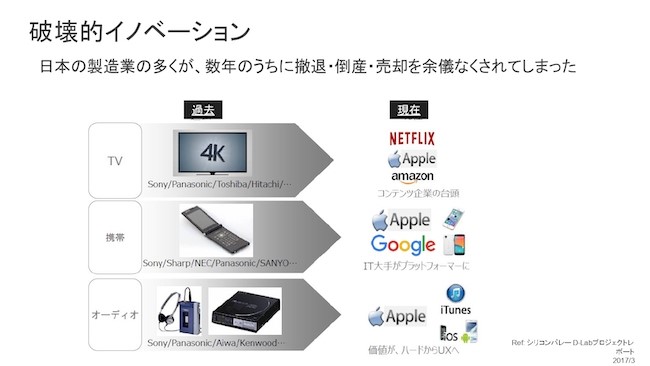 実際、日本の国家戦略としても今「Society5.0」という名前で、いろんな省庁がこれに向けて努力しているわけですね。文明が始まったときのSociety1.0は狩猟文化で、そのあと農耕になり、産業革命が起きて工業化になり、情報化社会になる。工業化社会のときの日本は、製造業を中心として圧倒的に勝利した時代でしたが、情報化社会ではアメリカのシリコンバレーに負けたという時代です。