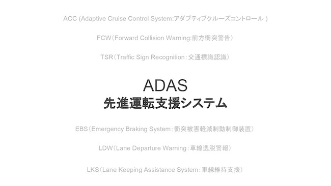 自動運転の前に、実はADASと言われているドライブアシスタンスの機能があって。(スライドを指して)ここにもいくつか書いてあるんですけれども、ほぼ自動運転に近いような機能というのは実現しているところもあるんですね。