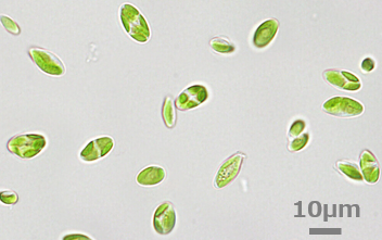 コッコミクサKJは、成長が早く、丈夫で培養しやすい微細藻類です。ビタミン類やアミノ酸など豊富な栄養素を含んでいること、歯周病の原因菌の増加を抑制することなど、さまざまな特徴を持っています。また、2019年には、コッコミクサKJのMGDGがヘルペスウイルスのエンベロープ膜*3を破壊すること、および、ヘルペスウイルスに対する殺ウイルス効果があることも明らかになっています。