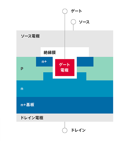 狭セルピッチのトレンチゲート構造を採用しており、業界トップクラス※の低オン抵抗を実現しています。