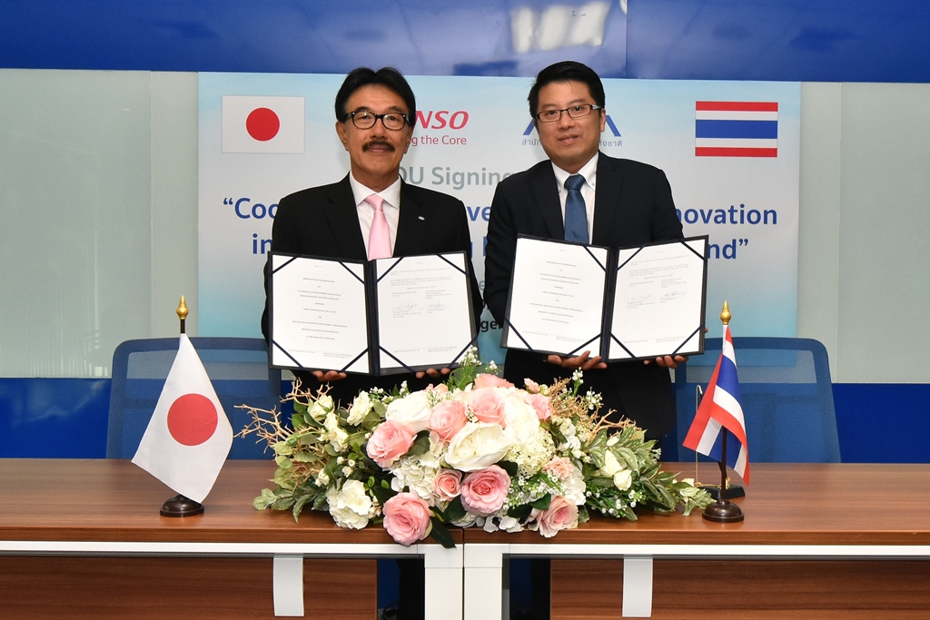 Mr.Masao Suematsu, Chief of Operation Officer & Executive Vice President of DENSO International Asia Co., Ltd. (DIAT) as the representative of DIAT and Dr. Pun-Arj Chairatana, Director of The National Innovation Agency (Public Organization) (NIA) of the Ministry of Science and Technology of Thailand, as the representative of NIA, together signed a Memorandum of Understanding (MoU) on “The Collaboration on the Development of Manufacturing Industry Innovation in Thailand”. Its aims to advance technologies and innovations in the manufacturing industry of Thailand through DENSO’s know-how and experience in this area as well as promote cooperation between public, private, and academic sectors in the development. DENSO and NIA will continue to work more closely for further expanding their capabilities to reach other industries such as automated vehicle and logistic technologies.