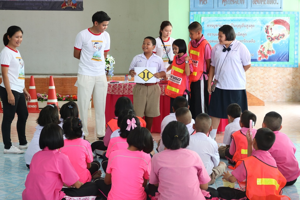 Thai DENSO Group in collaboration with Mitsui Sumitomo Insurance Co., Ltd. Thailand Branch organized "Road Safety for Schools #6" at Chumchon Wat Nong Tumlung School, Chonburi province. The two companies donated 750 helmets to the students in order to minimize severity of road accidents in motorized two wheelers. To continuously create consciousness and understanding of road safety among youth, Thai DENSO Group & Mitsui volunteers also provided a hands-on demonstration on the correct helmet usage and road safety games which stressed the importance of traffic safety and learning to stay safer as a passenger and a pedestrian.